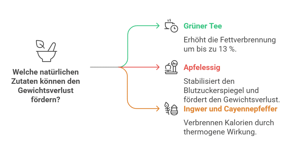 | Was an der Mischung plausibel ist | Koffein und Pflanzenstoffe können den Energieumsatz kurzfristig leicht erhöhen, entscheidend bleibt jedoch die Gesamternährung und Bewegung. |