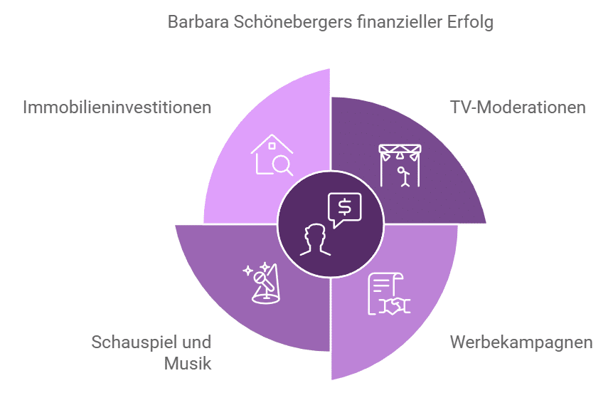 - TV-Moderationen: Barbara Schöneberger arbeitet als Moderatorin zahlreicher Galas und Veranstaltungen. Besonders bekannt ist sie für ihre Moderation des DKMS Dreamballs, die sie mehrmals übernommen hat. Ihre Gagen pro Event bewegen sich oft im Bereich von 2 Millionen Euro.