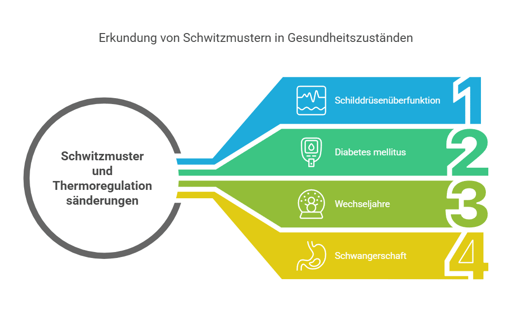- Schilddrüsenüberfunktion: Erhöhter Stoffwechsel führt zu übermäßigem Schwitzen und Herzrasen.