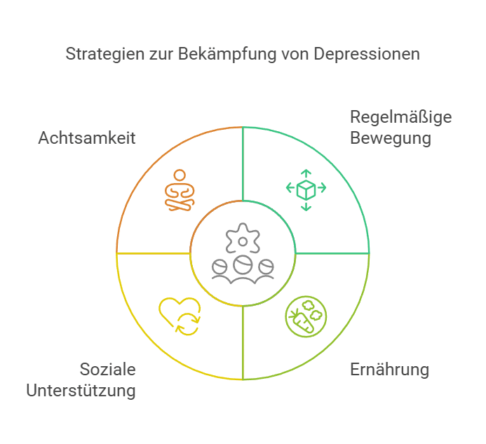 - Achtsamkeit: Techniken wie Meditation oder Yoga können Stress reduzieren und depressive Phasen abmildern.