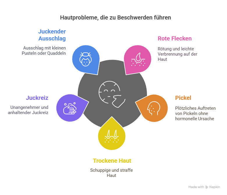 Ein Hautausschlag im Gesicht ist für viele Menschen eine große Belastung, da er schwer zu verstecken ist. Gerade im beruflichen Kontext oder im sozialen Umfeld kann dies zu Verunsicherung führen. Doch auch hier gilt: Die Haut ist ein Warnsystem – und zeigt, dass die Haut Aufmerksamkeit braucht, nicht nur in Form von Pflege, sondern auch durch innere Balance.