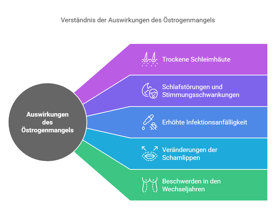 Mit dem Beginn der Wechseljahre produziert der Körper weniger Östrogen. Dieser Mangel an Östrogen wirkt sich auf die Schleimhaut der Vagina aus und führt zu folgenden Problemen: