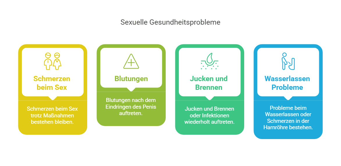 - Schmerzen beim Sex trotz Maßnahmen bestehen bleiben.