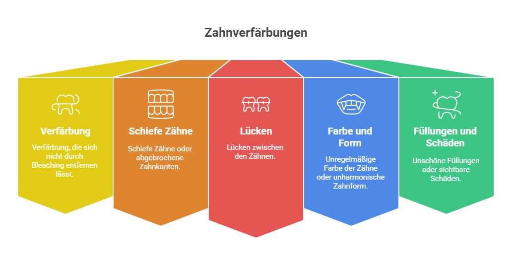 Unregelmäßige Farbe der Zähne oder unharmonische Zahnform