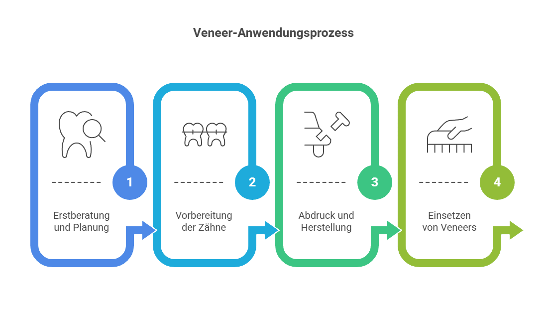 Der Weg zur Versorgung mit einem Veneer verläuft in mehreren Etappen: