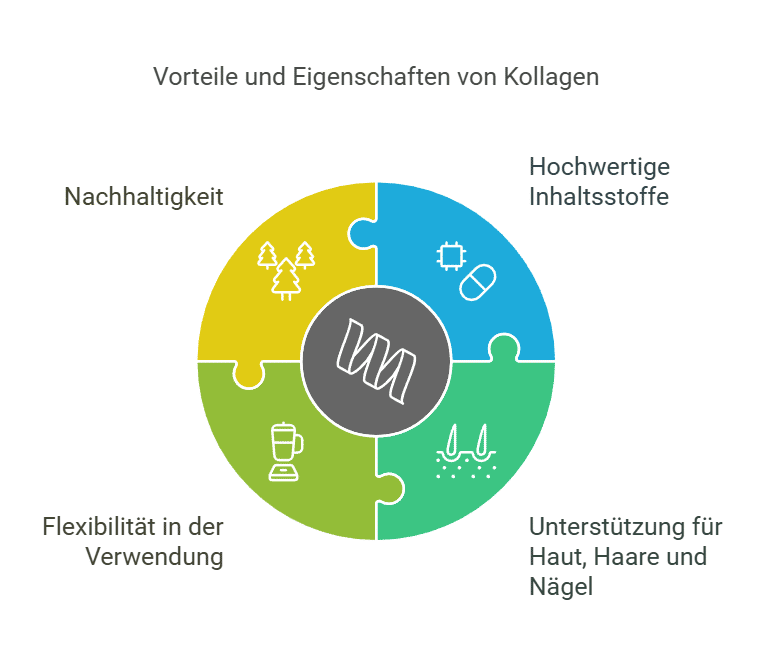 - Nachhaltig: Kollagen wird aus tierischen Quellen gewonnen, die strenge Qualitätsstandards erfüllen.